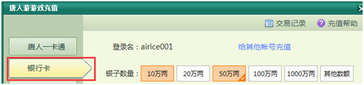 有了网银支付的银行卡,可在游戏大厅中直接进入充值中心,选择“银行卡”的支付方式,充值时无需再次填写您的账号。